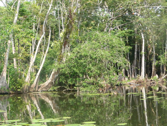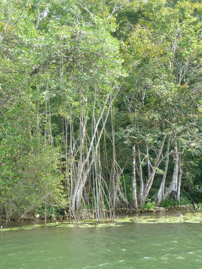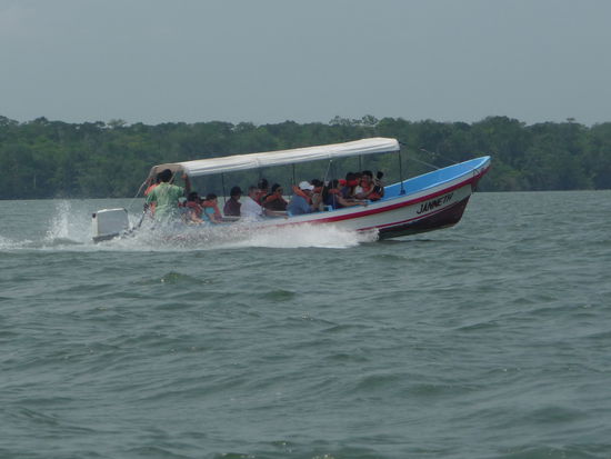 Vom gleichnamigen Ort geht es über den Rio Dulce der am größten See Guatemalas den Lago de Izabal seinen Anfang nimmt und sich in seinen Mittelauf zu einen 5 km breiten See den El Golfete erweitert bevor er bei Livingston in die Karibische See mündet. Ein großer Teil der des Gebietes gehört zum Nationalpark Rio Dulce in denen Seekühe, Jaguare, Krokodile ,Schildkröten, Tapirs,Leguane,Brüllaffen und viele Vogelarten wie der Tukan Ihre Heimat haben. Ausflugsboote halten neben den zahlreichen Fischrestaurants auch gerne an den heißen Quellen ( Aquas Calientes ) die zum baden einladen.Während der ca. zweistündigen Bootsfahrt nach Livingston über den Rio Dulce wofür ich 25 US Dollar bezahlte machten wir auch Halt an einen der Fischrestaurants um etwas zu essen. An einigen Stellen des Flußes hatte man Eindruck als währe man auf den Amazonas unterwegs.