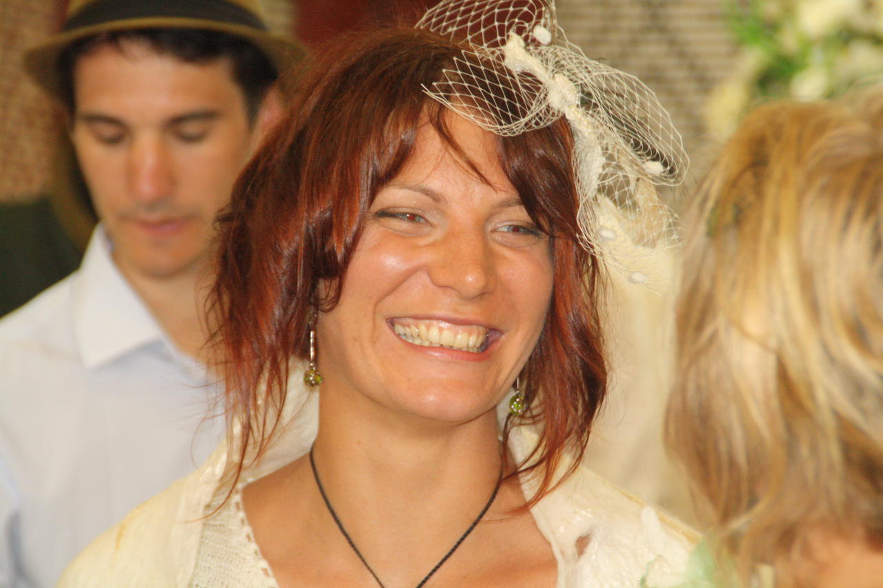 endlich Sarah in ihrem selbst gehäckelten Hochzeitskleid und selbst gefilztem Umhang... super schön und super hübsch.