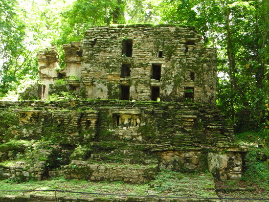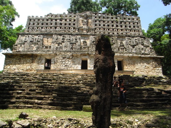 Am naechsten Stop warteten schon unsere Boote zu den Ruinen von Yaxchilán. Die Ruinen haben uns sehr gut gefallen, da sie mitten im Dschungel liegen und auch keine Verkaufsstaende anzutreffen sind. Ines hat sogar eine Vogelspinne in einem Baum entdeckt.
