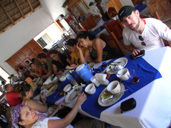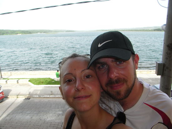 Voller Vorfreude auf eine weitere mehrstuendige Busfahrt standen wir puenktlich um sieben vor dem Hostel. Die Fahrt war eigentlich wie immer: holprig, heiss und laaang. Zwischendurch allerdings gespickt mit unfreiwilligen Showeinlagen. Schon direkt anfangs gestaltete sich die Platzwahl etwas schwierig, da mehr Personen einstiegen, als freie Plaetze zur Verfuegung standen. Keiner hatte wirklich Bock darauf, seinen Platz mit jemandem zu teilen. Letztendlich gab es doch Freiwillige (wir nicht!). Das Platzproblem loeste sich aber spaeter wie von ganz alleine, da an der Grenze zu Belize zwei Personen nicht einreisen durften...warum auch immer?