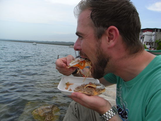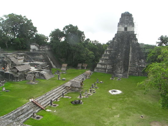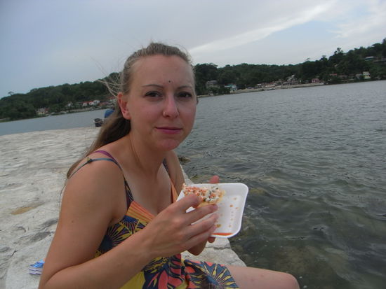 In Tikal angekommen, wurden wir nach englisch- und spanischsprechenden Gruppen eingeteilt und waren fuer die naechsten vier Stunden mit einem Guide in den Ruinen unterwegs. Die einzelnen Tempel liegen teilweise recht weit auseinander, sodass wir auch quer durch den Dschungel wandern mussten. Bei einigen Gebaeuden hatte man eine fantastische Sicht ueber den Urwald. Normalerweise haetten wir noch Zeit zur freien Verfuegung gehabt, entschieden uns aber, den ersten Bus zurueck nach Flores zu nehmen. Wir hatten richtig Lust auf Pizza und freuten uns, als sie endlich nach einer Stunde Wartezeit auf dem Tisch lag (gut ist anders, da suesser Muerbeteig eher ungeeignet ist). Sebi machte es sich in seinem Bett gemuetlich und Ines ist waehrenddessen an den See gegangen. Am Abend trafen wir uns nochmal mit Julian zum Taccos essen.