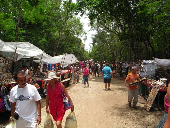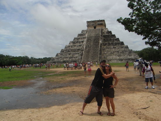 So, die allerbeste und beruehmteste Ruine haben wir uns natuerlich zum Schluss aufgehoben. In wiederum geschrumpfter Version - Catie hat sich wieder zurueck nach Belize abgesetzt - gings mit dem Bus nach Chichén Itzá. Empfangen wurden wir von Menschenhorden und Regenmaentelverkaeufern. Jetzt hiess es erstmal anstellen und an zwei verschiedenen Kassen jeweils ein Ticket kaufen (???? these guys!). Den schlimmsten Teil hatten wir aber noch vor uns: Von Ruhe und Atmosphaere konnte man hier leider nur traeumen. Die Wege waren gepflastert von Souvenirstaenden, die zwar u.a. schoene, selbstgemachte Produkte, aber auch den letzten Quatsch (z.B. Penispfeifen) anboten. Noch schlimmer waren allerdings die Verkaeufer, die ueberall in daemliche Holzfiguren bliesen, um das Bruellen eines Jaguars zu imitieren. Die Ruine selbst ist beeindruckend (7. Weltwunder der Moderne), leidet aber unter all dem "Scheiss". Ines ist aufgrund eines grippalen Infektes, Malaria (eher nicht) oder doch nur eines Sonnenstiches vorzeitig zum Ausgang gegangen. Voellig genervt konnten wir Restlichen 1 1/2 Stunden spaeter auch dem ganzen Tourikram entkommen.