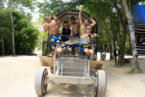 Heute war action angesagt. Ein colectivo hat uns am Eingang zur "hidden world" - einem natural funpark - abgesetzt. Los ging es mit dem "frog" (eine Art Amphibienfahrzeug) durch schlammgefuellte Schlagloecher in den Dschungel.
