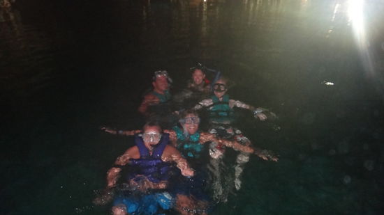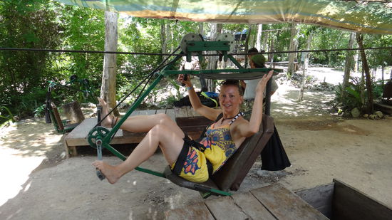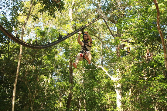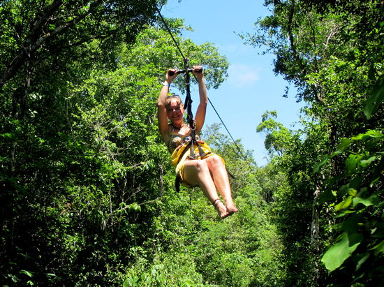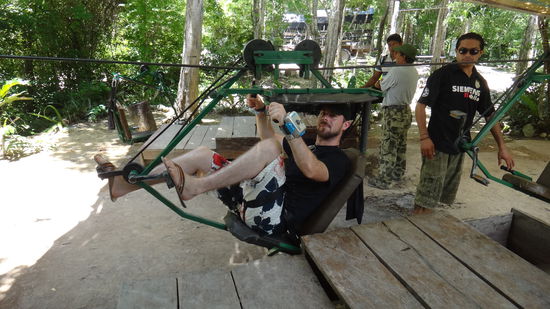 Auf dem Programm standen verschiedene mehr oder weniger Spektakulaere Aktivitaeten. Los gings mit Sky Cycling. Dabei haengt ein Fahrrad an einem Drahtseil. Im gemuetlichen Tempo strampelt man durch den Dschungel und durch zwei Grotten. In einer Wasserhoehle konnten wir schnorcheln und Stalagmiten und Stalatiten bestaunen. Die RollerCoaster-Zipline liess uns im hohem Tempo durch die Luft wirbeln und fuehrte uns wieder in die Wasserhoehle. Das ganze Programm war sehr spassig, aber teuer.