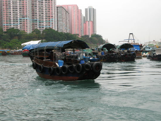 Der Hafen von Aberdeen mit seinen zahllosen Wohnbooten war zumindest früher einmal das zweite Wahrzeichen HongKongs. Rund 5000 Familien leben und arbeiten noch heute auf dem Wasser und gehen nur zum Einkaufen oder Ausladen an Land. Die Hausboote gleichen z.T. schwimmenden Bretterhäusern - oft fragt man sich, ob diese manövrierfähig sind. Zum Teil leben auf den Schiffen sogar Haustiere wie Hunde, Hühner oder Schweine - oft in Käfigen am Heck hängend - so entfällt das Ausmisten...