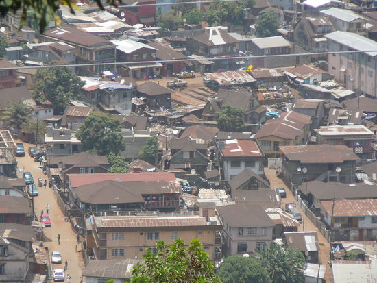 Die wahre Schönheit Freetowns offenbart sich aber demjenigen, der sich - zu Fuß oder per Taxi- auf einen der umliegenden Hügel oder eine der Anhöhen begibt. Ich wähle die Umgebung des Fourah Bah College, unter dem sich die Stadt in seinem ganzen Ausmaß ausbreitet. Sie liegt traumhaft, langgezogen am Atlantik, durchzogen von Hügeln, Creeks und an einer ganzen Reihe von Buchten, Cline Bay, Destruction Bay, Susan's Bay, Kroo Bay, White Mans Bay und der Man of War Bay, dort wo ich wohne.