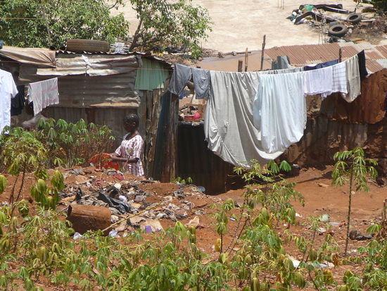 Zurück zum Verkehr. Jeder Taxifahrer hat seine eigenen Ideen wie er den größten Stau durch Schleichwege umfahren kann. Das Ergebnis ist aber stets dasselbe. Wir stehen. Nur langsam geht es vorwärts. Für mich hat es neben Schweißausbrüchen, Kopfschmerzen und Schwindelanfällen wegen der Hitze und dem ewigen Gehupe den Vorteil, dass ich auf diese Weise viele Gegenden der Stadt abseits der Hauptstraßen kennenlerne. Hier mittendrin bietet sich oft ein ganz anderes Bild vom Stadtleben als von einer der Anhöhen. Ganze Stadtviertel sind mit Fug und Recht als Slum zu bezeichnen, teilweise der übelsten Sorte. Es sind verstörende Anblicke, die sich aus dem im Stau stehenden Taxi bieten. Wenn z.B. nackte Kleinkinder im Dreck umher waten und auf Abfallbergen spielen. Ich bin dann froh, wenn es wieder ein paar Meter weiter geht, aber dort bietet sich dann ein ähnliches Bild.