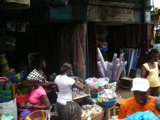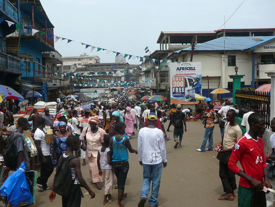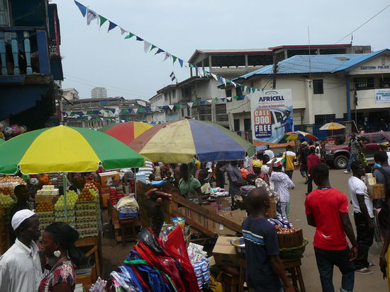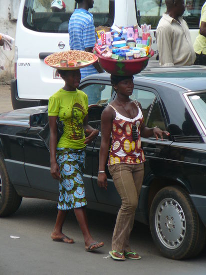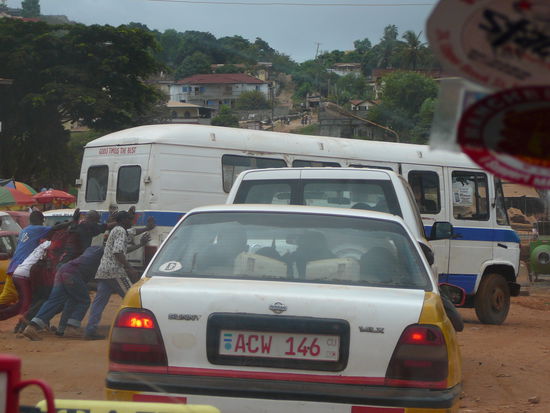 Ich will gar nicht den Versuch machen zu beschreiben, was sich auf den Straßen Freetowns abspielt. Man muss es einfach gesehen und erlebt haben. Oder besser nicht. Es drängen sich viel zu viele Fahrzeuge, oft genug schrottreife, auf "Straßen", von denen nur wenige, im Stadtzentrum, asphaltiert sind. Der Rest ist teilweise übelste staubige Buckelpiste, durchsetzt mit hinterhältigen "Humps", zur Geschwindigkeitsreduzierung, wo doch gar keine Geschwindigkeit erreicht wird. Wenn man nicht gerade im Morgengrauen aufbricht steht man den ganzen Tag über im Dauerstau. Für die Strecke von meinem Guesthouse nach Downtown benötige ich bei freier Fahrt keine 20 Minuten, vorexerziert mit einem Moped um 5 Uhr in der Frühe zum Busbahnhof. Tagsüber dauert die Strecke bis zu 2 Stunden, Oneway, Schwitzen im glutheißen Taxi inklusive.