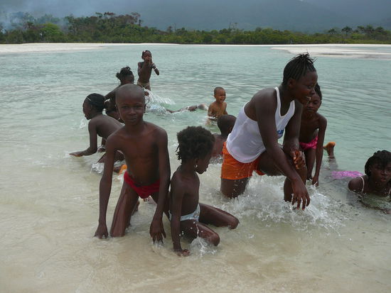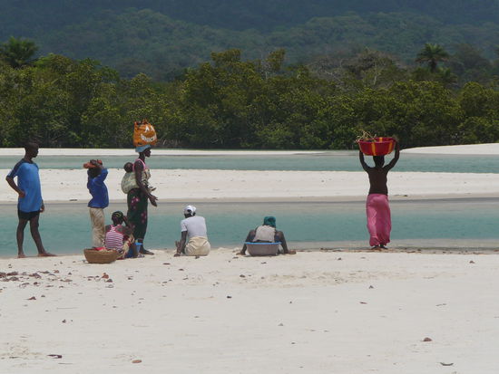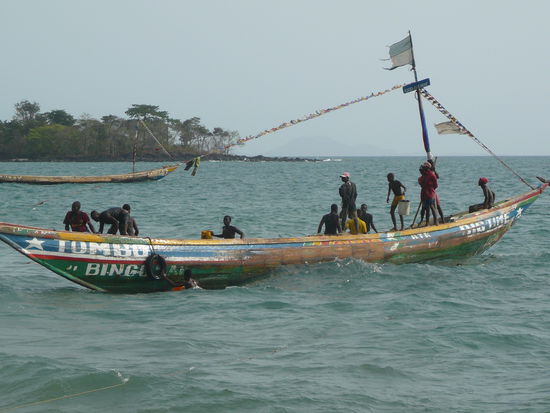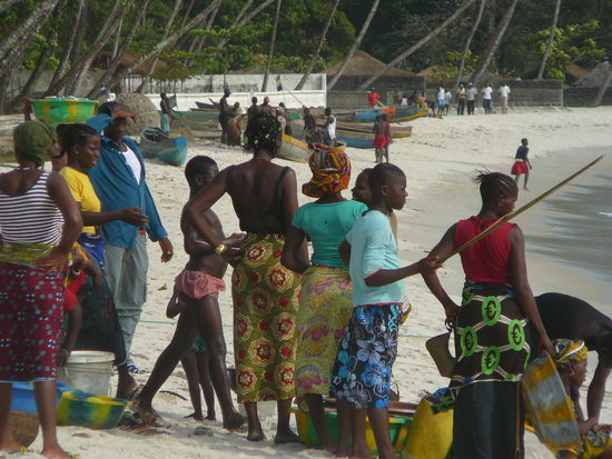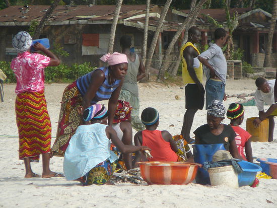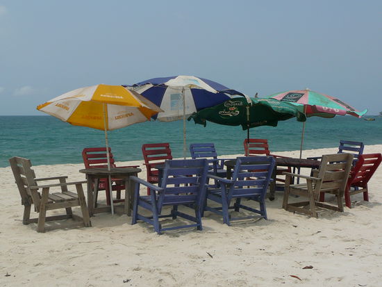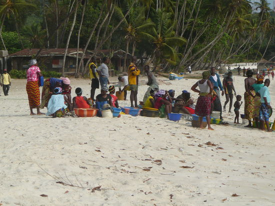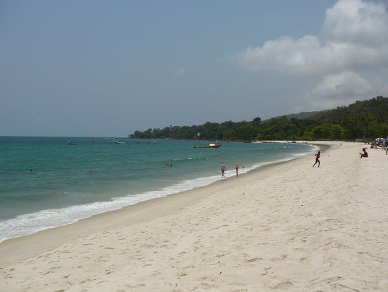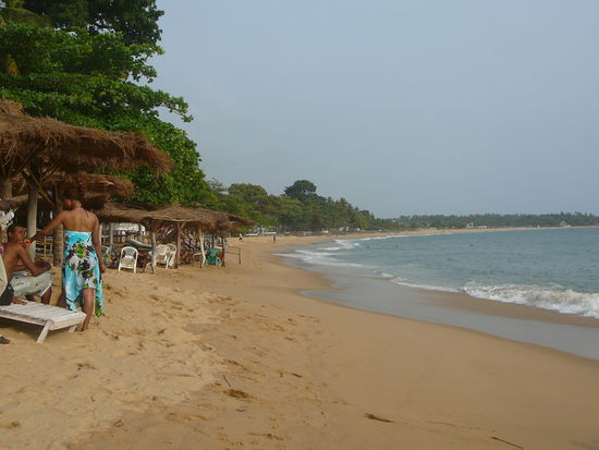 Ich darf mal kurz vorstellen: Lumley Beach, Juba, Lakka, Hamilton, Sussex, Bawbaw, River No. 2, Tokeh, York, Black Johnson, John Obey, Bureh, Kent, Mama Beach, wie an einer Perlenkette aufgezogen reiht sich auf der Halbinsel Freetowns über ca. 40 Kilometer ein wunderschöner Strand an den anderen, manche breiter und länger, manche klein, aber stets mit feinem weißen Sand wie Puderzucker, meist palmengesäumt, im Hintergrund die grün bewachsenen Hügel und Bergkegel des Hinterlandes. Wochentags hat man oft einen ganzen Strand ganz für sich allein bzw. teilt ihn sich am späten Nachmittag mit den Fischern und den Frauen, die den Fang am Strand in Empfang nehmen. An Wochenenden fallen die Geschäftsleute mit ihren Familien, die NGO-Mitarbeiter und die Freetowner, die es sich leisten können, ein. Richtig voll wird es aber nirgends.