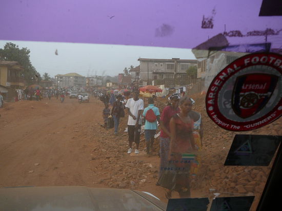 Ein Manko sind mal wieder die Straßenverhältnisse. Während auf der anderen Seite der Halbinsel die Hauptstraße asphaltiert ist und sich der Asphalt bis zu den südlichen Stränden erstreckt, wird von Freetown her die Straße durch ein senegalisches Unternehmen gerade hergerichtet und ist derzeit noch eine üble, staubige Buckelpiste.