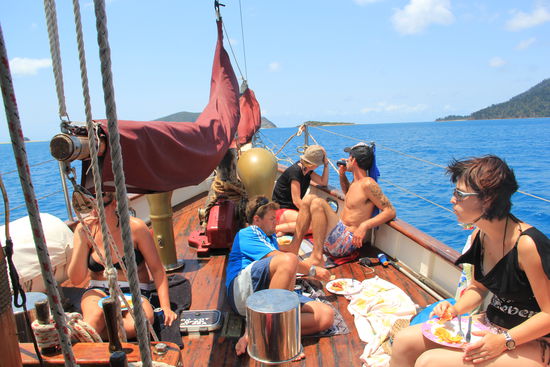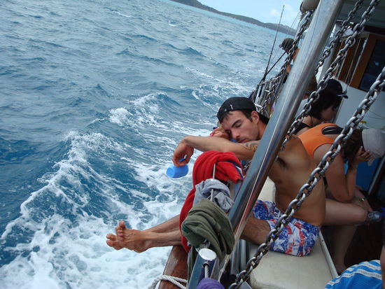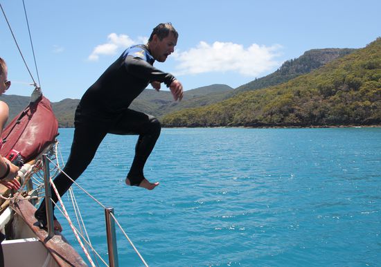 Solange uns Brad und Chris zu den Whitsundays bringen sind wir für alle Schandtaten bereit ...wer braucht schon eine Dusche wenn man das große weite Meer um sich herrum hat.