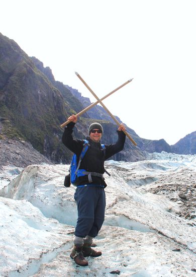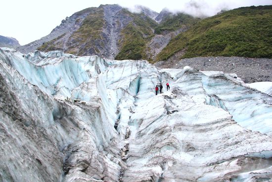 Hier gibts 2 große gletscher den Franz Joseph und den Fox glacier. Das sind einige der wenigen Gletscher dieser Welt die wachsen und nicht schmelzen- sie breiten sich Jahr für Jahr immer weiter nach unten aus...ein paar leute haben uns gesagt das der Fox Glacier zwar der kleinere von beiden ist aber schöner sein soll. Es ist so weit heut steht die Gletscherwanderung auf dem Program und wir entscheiden und für den Fox Glacier. Wir haben auf Bildern gesehen das das die Kiwis einen Eifelturm auf dem Gletscher gebaut haben sieht irgentwie völlig schräg aus wir habens aber nicht in natura gesehen weil der noch viel weiter ober ist und man den nur sehen kann wenn man mit dem Helikopter hochfliegt. wir sind mit T-Shirt losgelaufen und oben auf dem Gletscher hatten wir dan mütze handschuhe und Jacke an.