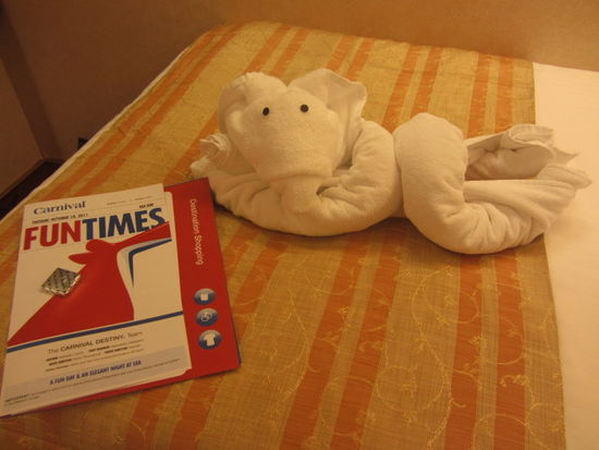 Am ersten Tag war erstmal nur fahren angesagt, was ganz gut war..wir waren immer noch damit beschäftigt uns alles auf dem Schiff anzusehen. Mit 3000 Leuten war es zwar voll, aber trotzdem nicht überlaufen. Man hat immer irgendwo Platz zum sitzen gefunden. Abends gegen 20.15 gabs immer Dinner. Wir saßen mit 4 anderen Deutschen an einem Tisch, was ich nicht so toll fand (wie soll man denn so mit dem Englisch weiter kommen?!), aber nun wars halt so. Unsere beiden Kellner waren super und wir hatten jeden Abend ne Menge zu lachen!