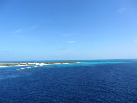 Gegen 15Uhr gings dann schon weiter, Richtung Half Moon Key. Die Insel liegt in den Bahamas, ist relativ klein und dort leben nur 20 Angestellte die damit beschäftigt sind alles sauber zu halten. Die Insel gehört der Kreuzfahrtgesellschaft Carnival. Die ganze Crew sollte dort an Land gehen und für Essen und Unterhaltung sorgen. Wir haben uns total darauf gefreut und sind überpünktlich morgens aufgestanden, hatten auf Grund der Innenkabine ja kein Fenster und waren total geschockt als wir an Deck kamen! Nur noch 20 Grad und mal wieder Regen, in Strömen! Also haben wir erstmal in Ruhe gefrühstückt und uns gegen halb elf unser Ticket fürs Schiff geholt, welches uns an Land bringen sollte. Um halb 12 standen wir dann am Ausgang und wollten gerade boarden, als es auf einmal hieß das Meer wäre zu unruhig und es wäre zu gefährlich die Leute an Land zu bringen. Tatsächlich haben wir das Boot gesehen in das wir steigen sollten und das ging ca 10 meter hoch und runter. Mir war schon ein wenig schlecht bevor ich überhaupt eingestiegen bin und war erstmal froh das wir noch warten sollten. Wir wurden dann immer weiter hingehalten und irgendwann hieß es, dass wir gar nicht mehr von Bord gehen dürfen und nur noch darauf gewartet wird das die Leute, die schon auf der Insel waren, wieder kommen.