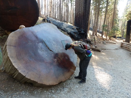 So haben wir nach und nach die Aussichtspunkte "abgearbeitet" und sind am nachmittag 50 km weiter bergauf, bergab zum Mariposa Grove gefahren, einem Hain mit Riesenmammutbäumen. Dort sind wir dann 4 Stunden wandern gewesen. Auf dem Weg dorthin haben wir noch einen Bären mit Jungem gesehen, die vor uns über die Straße gelaufen sind. Leider war meine Kamera im Rucksack verstaut.