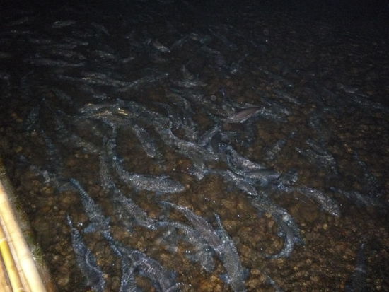 Hunderte von Fischen schwammen neben den Floss. Nun wussten wir auch warum man Fischfutter am Eingang kaufen konnte