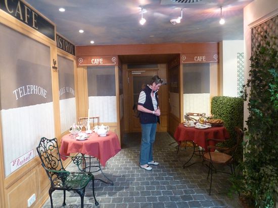 Wir halten uns lange auf, können danach im Museumscafé, das vollständig im Stil des Dresdner Milchladens wieder aufgebaut wurde, dann schließlich einen kleinen Snack zu uns nehmen, damit wir noch genügend Hunger für abends haben. Kaffee und Käsekuchen/ Schorle und Salamisandwich.