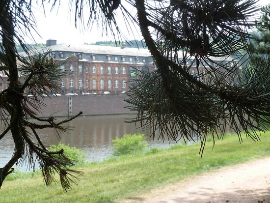 Zwei Herren befrage ich noch zu einem Gebäude auf der anderen Saarseite, aber sie wissen wieder kaum etwas. Wir fahren über die Brücke und finden das Herrschaftshaus Saareck, das heute wohl als Gästehaus von Villeroy & Boch genutzt wird, in einem herrlichen Park, wo auch ein prachtvoller Pferdestall sehenswert ist.