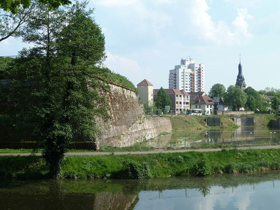 Der Nachmittag ist schon fortgeschritten und wir fahren nach Saarlouis, das eine alte Festung von Vauban haben soll. Aber davon ist nur noch der nördliche Ausläufer zur Hälfte erhalten. Der Spaziergang um diesen ist recht nett, aber nach beispielsweise Neuf-Brisach ist der Abstecher nicht wirklich lohnend.