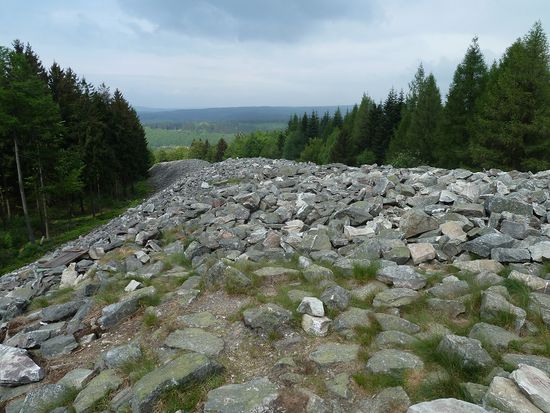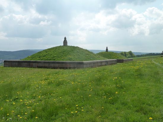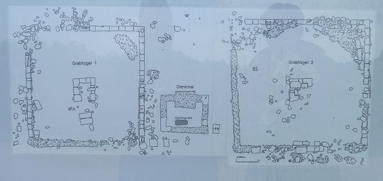 Nächste Station sind die beiden römischen Grabhügel bei Oberlöstern, die man irrtümlich für keltische Grabhügel gehalten hatte, aber nach dem Fund von bearbeiteten Halbrundsteinen dann doch der römischen Zeit zuordnen mußte.
