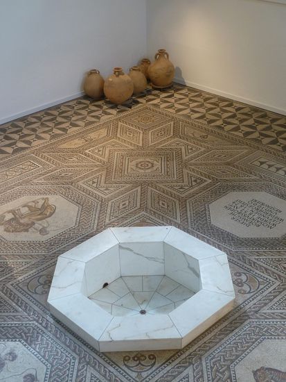 Nicht weit entfernt befinden sich sich die toll erhaltenen/ restaurierten Mosaiken der römischen Villa Nennig. In einem Schutzbau kann man die Mosaiken von oben bewundern. Von der röm. Villa sind nur noch die Fundamente restauriert und in einer großen Rasenfläche zu erkennen.