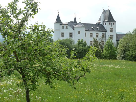 Da nicht weit entfernt, müssen wir auch noch Schloß Berg mit seinem Renaissancegarten besuchen. Im Schloß ist inzwischen ein Casino in einem ultramodernen Anbau untergebracht und ein Sternekoch bewirtschaftet einen Gourmettempel und eine (etwas weniger teure) Scheune. Der Renaissancegarten krankt an einer Seuche bei dem Buchsbaumbewuchs, der diesen wohl in Kürze vernichtet haben wird.