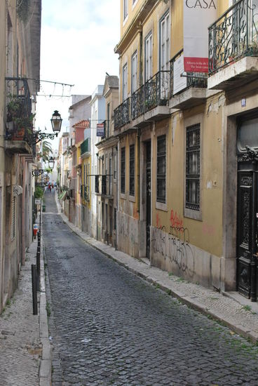 Mit dem eben kennengelernten Amerikaner namens Greg im Schlepptau (er erzählt auch, dass er sich ein wenig verlaufen hat und ganz froh ist, auf irgendeine Menschenseele zu treffen, die nicht zur Stadtreinigung gehört) wähle ich jetzt die Travessa da Portuguesa, um zur Rua da Bica zu kommen. Mein Plan ist nämlich, den elevador da Bica zu nehmen, um wieder die Unterstadt und den Bahnhof Cais do Sodré zu erreichen. Der elevador ist ausser Betrieb und aus gutem Grund: Die Rua ist eine steil-abwärts-führende Gasse und die Stadtreinigung macht hier kurzen Prozess: Sie spülen aus Feuerwehrschleuchen Wasser die Gasse hinunter, um die hier wirklich absolut gigantischen Müllmengen unten aufsaugen zu können. Es ist eine Sackgasse. Herzlichen Glückwunsch ! Greg und ich in unseren offenen Sandalen waten jetzt knöcheltief in Müll und Scherben die Gasse hinunter. Zumal wir die ganze Sch.. auch noch durch das Wasser durch unsere Schuhe gespült bekommen. Die erste Gasse rechts-raus ist meine ! Greg folgt mir. Ich hab´keine Lust, mir Splitter in die Füsse zu treten und er auch nicht. Mein immer gut-funktionierender Orientierungssinn funkt, dass wir nicht weit vom Mercado da Ribeira sind. Heute natürlich geschlossen. Wir beobachten, wie ein Taxi vor der Markthalle hält und 2 (um 11.30 Uhr vormittags !) noch immer feiernde Hauptstadt-Portuguiesen ausspuckt. Die singen und tanzen, immer noch ! Ich verabschiede mich von meinem netten Begleiter am Bahnhof Cais do Sodré und kehre per Metro zurück zur Praça dos Restauradores. Das Bairro Alto sollte man wohl tatsächlich besser abends aufsuchen und ein wenig dem Nachtleben frönen, tagsüber ist es ein wenig langweilig da oben.