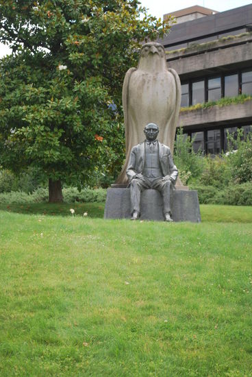 Nachstes Ziel: Metro-Station Praça de Espanha. Sinn und Zweck des Ausfluges nach Neu-Lissabon und zu den Avenidas Novas: Besuch im weltberühmten Gulbenkian-Museum. Calouste Gulbenkian war ein steinreicher armenisch-stämmiger US-Öl-Milliardär, der seine letzten Jahre in Lissabon verbracht hat. Seine unschätzbar wertvolle Kunstsammlung vermachte er einer Stiftung, die das nach ihm benannte Museum betreibt und da will ich hin. Die Orientierung fällt mir etwas schwer, als ich die Metrostation verlasse, denn ich stehe vor einer riesigen Strassenkreuzung, wo sich mehrspurige avenidas treffen. Aber ich habe den richtigen Riecher und stehe bald vor der Statue von Calouste Gulbenkian vor seinem Museum.