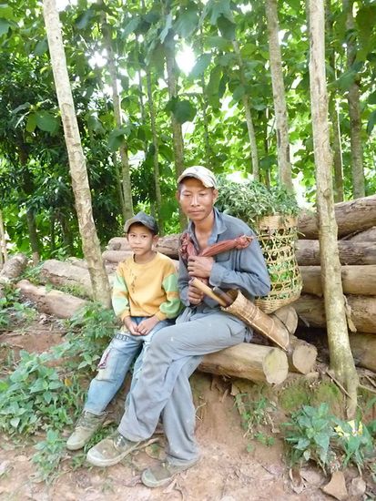 Ausflug auf die gegenüberliegende Seite von L.P. Dort treffen wir auf eine Familie (mit Vogel im Holzkasten), die kein Wort Englisch sprechen, aber wir verstehen uns prächtig.