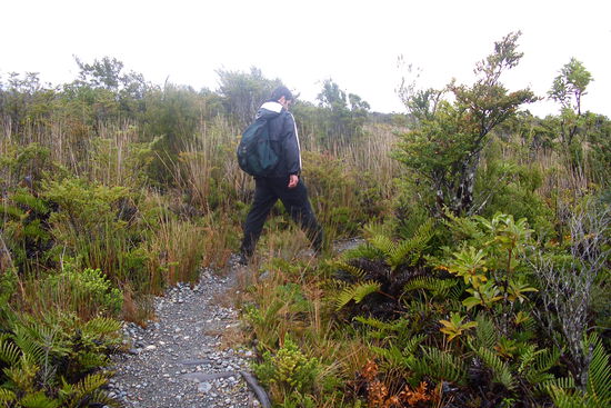 Auf der Hinfahrt ging irgendwo mitten auf der Insel erstmal unser Bus kaputt (fuer die Statistik: Buspanne Nr. 2) - alle raus aus dem doch verdaechtig rauchenden Gefaehrt, Rucksaecke aus dem komplett vernebelten Gepaeckraum. So standen wir im Matsch, aber: es hat NICHT geregnet. Der Busfahrer hat schnell seinen Mechanikeranzug uebergeworfen (Punkt neun von zehn guten Gruenden, mit Cruz del Sur zu fahren: die Fahrer erhalten eine professionelle Ausbildung...), und innerhalb von zehn Minuten konnten wir alle wieder einsteigen und nur noch etwas rauchend bis nach Castro weiterfahren.