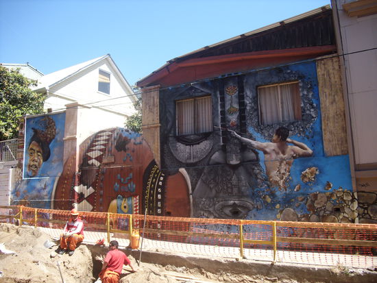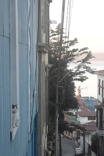 Seit Sonntag Morgen um 07:00 sind wir in Valparaíso. Die Taxifahrt zum Hostel (sonntags faehrt so frueh noch keine Metro) fuehrte uns direkt in die verschlungenen Strassen und Gassen auf den Huegeln von Valparaiso. Da wir leider den Namen unseres Hostels vergessen und nur eine Hausnummer hatten, suchten wir gemeinsam mit dem Taxifahrer einige Minuten nach der richtigen Adresse, bis uns ein Nachbar aufklaerte, dass wir direkt vor dem Hostel standen. Also mussten wir nur noch kurz klingeln und schon durften wir in unser Zimmer und ins Bett...die Cafes und alles andere oeffnen sowieso erst gegen elf.