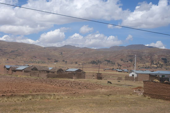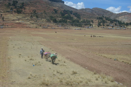 Zunaechst unterscheidet sich beim Blick aus dem Busfenster nichts zwischen Bolivien und Peru - die Frauen tragen die gleichen Trachten und bunte Schultertuecher, die Aecker werden genauso mit Zugtieren (nur dass es hier oefter mal zwei statt nur ein Ochsen sind) oder Hacken beackert, und die Haeuser auf dem Land bestehen ebenfalls meist aus Lehmziegeln. Der erste Unterschied, der uns aufgefallen ist, ist, dass die unverputzten "staedtischen" Haeuser nicht aus roten, sondern grauen Ziegeln bestehen...alles andere werden wir noch herausfinden!