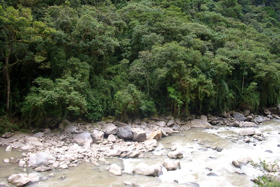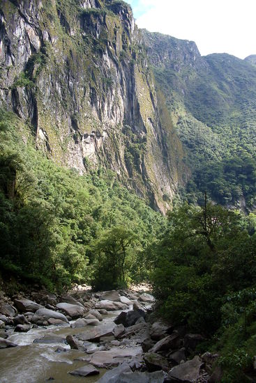 Die Zugfahrt war ein absolutes Highlight. Durch ein immer schmaler werdendes, von unheimlich steilen, hohen Bergen eingefasstes Tal ging es am Fluss entlang immer weiter abwaerts Richtung Amazonasbecken (grobe Richtung, der "echte" Amazonas ist noch 500 km entfernt, aber der Fluss muendet irgendwann in ihn). Durch die Panoramafenster hatten wir einen grossartigen Blick auf alles, nur gestoert durch das lautstarke Geplaerre der beiden amerikanischen Paerchen vor bzw. neben uns...gottseidank schliefen sie schnell ein und wir hatten wieder unsere Ruhe =)