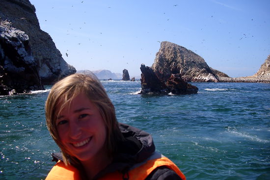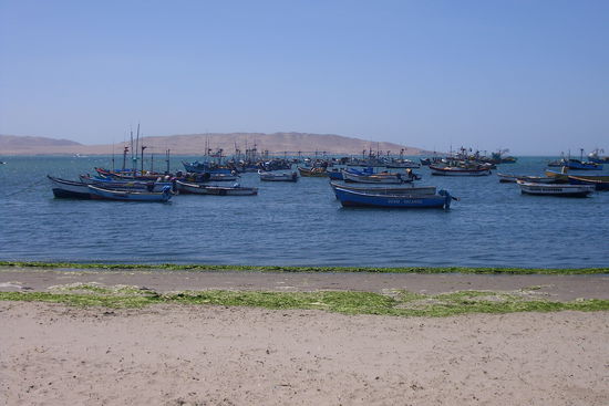 Nur 45 Minuten Fahrt von Huacachina entfernt am Pazifik kann man den Nationalpark der Halbinsel Paracas und die dazugehoerigen Islas Ballestas, die "kleinen Galapagosinseln", bewundern. Morgens um acht legen die Motorboote ab, die erste Station ist der sogenannte Kandelaber, eine ueber 120 m grosse Felszeichnung, die ein bisschen den beruehmten Nasca-Linien aehnelt. Allerdings ist diese Zeichnung bei weitem nicht so alt, man vermutet, dass sie Seefahrern (oder in einer anderen Theorie Ausserirdischen) zur Orientierung dienen sollte.
