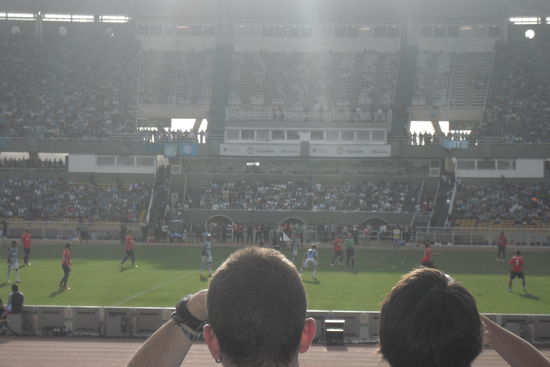 Heute haben wir es endlich mal geschafft, suedamerikanischen Fussball en vivo zu schauen. Im Mario Kempes-Stadion von Cordoba - genau, WM 1978, 2:3 gegen Oesterreich - gab es das Spiel Belgrano gegen Independiente zu sehen. Bemerkenswert war schon die Hinfahrt im Bus: fast eine 3/4 Stunde Zeit, um Fangesaenge zu lernen und die anderen "Fanbusse", die die gleiche Strecke fuhren, an Lautstaerke zu uebertrumpfen. Am Stadion angekommen, tauchten wir ein in das Meer aus Celeste (das Hellblau der Flagge Argentiniens, das auch die Farbe der Pirates von Belgrano ist). Die gegnerischen Fans von Independiente bekamen wir nur von weitem auf der Fantribuene zu Gesicht, anscheinend werden sie seperat vor dem Spiel ins Stadion geleitet und hinterher irgendwann spaeter wieder zurueck. In der zweiten Liga sind gegnerische Fans sogar erst seit diesem Jahr wieder erlaubt, eine rein zufaellige Entscheidung, die natuerlich nichts mit dem Abstieg des Traditionsclubs Riverplate zu tun hat. (Kurzfristig hat man nach diesem Abstieg (den uebrigens Belgrano Cordoba mit den Siegen in den Relegationsspielen besiegelt hat und nach dem die schweren Ausschreitungen in Buenes Aires stattfanden) sogar darueber nachgedacht, gerade mal die beiden ersten Ligen zu einer 36 Mannschaften umfassenden Liga zusammenzufuehren, mit der Begruendung, dass dann endlich im ganzen Land Erstligafussball zu sehen waere...).