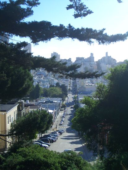 An den Feuerleitern haengt die Waesche, Shops voll von Delikatessen, Cafes und Restaurants reihen sich aneinander und man weiss, auch ohne die um die Laternen gewundenen Flaggen zu sehen, man ist im italienischen Viertel, North Beach genannt.