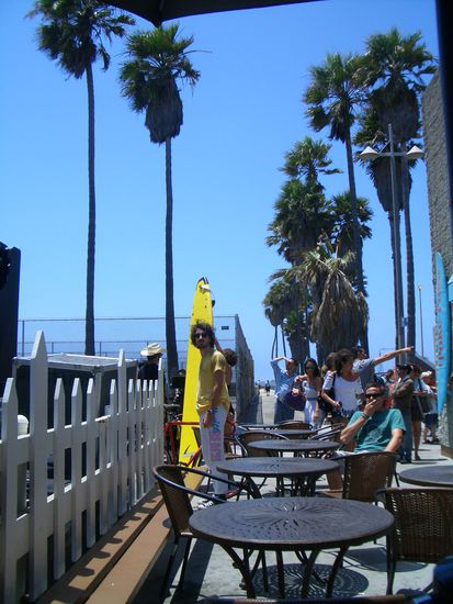 Ueberall sieht man Wandmalereien an den Haeusern, Surfer und Skater, die gemuetlich zusammen stehen und ratschen, man schlendert die Buden entlang, die mit dem ueblichen Touristenkitsch gefuellt sind(wenn auch in Kalifornien ziemlich cool, da es zumeist die bunten Shirts mit dem Friedenszeichen sind), alle paar Meter Musiker und richtig guten Cappuccino hab ich auch noch gefunden.