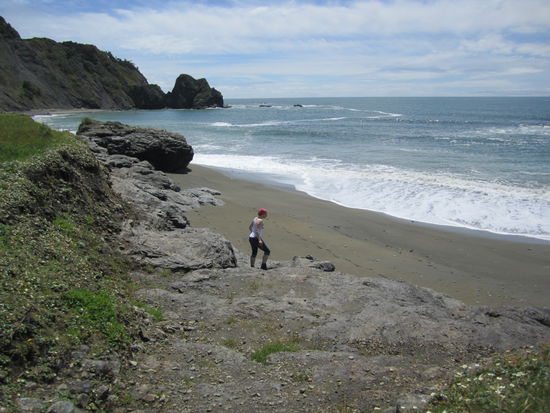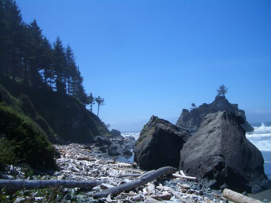 Hidden Beach war ein Juwel, versteckt gelegen, von Strandgut ueberschwemmt, brachen sich die Wellen an unzaehligen Felsen und ueber uns segelten die Voegel dahin.
