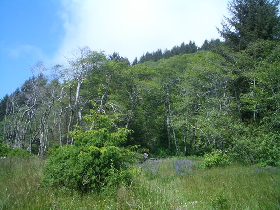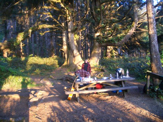 Angekommen waren wir am Gold Bluffs Campground, unserem eigentlichen Tagesziel, als wir aber hoerten, dass man pro Campsite 35.- Dollar bezahlen sollte, zogen wir den Wald dem Strand vor und nutzten nur deren solarbetriebene Duschen, die eh kalt waren.
