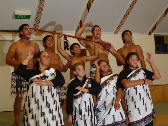 Was vielleicht nicht so vorteilhaft war, da auf dem Abendprogramm auch noch etwas Bewegung stehen sollte. Doch zuvor wurden uns erstmal von einer Gruppe Maoris traditionelle Kriegs-, Tanz und Gesangseinlagen vorgeführt, die wir alle mit unseren Kameras tatkräftig verfolgten.
