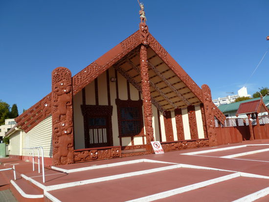 Anschließend ging es dann ohne größeren Zwischenhalt nach Wellington, wo wir dann am frühen Nachmittag in unser Hostel einchecken konnten. Der Rest des Tages stand uns bei ortstypischen Wetter mit Wind und Niesel frei zur Verfügung. So entschied ich mit ein paar anderen Backpackern aus meinem Bus das Nationalmuseum "Te Papa Tongarewa" aufzusuchen. Dieser Name kommt aus dem Maorischen und bedeutet so viel wie: "Der Ort der Schätze dieses Landes". Der Eintritt in das Museum ist kostenfrei. Und ich muss sagen, dass ich den Besuch auf jeden Fall lohnenswert finde. Auf 6 Etagen bietet es einen Einblick in diverse Themen und die Geschichte Neuseelands, außerdem hat man von dort eine sehr schöne Sicht auf Wellington.