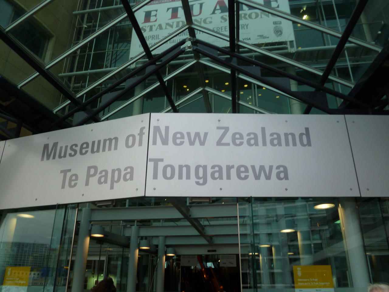 Anschließend ging es dann ohne größeren Zwischenhalt nach Wellington, wo wir dann am frühen Nachmittag in unser Hostel einchecken konnten. Der Rest des Tages stand uns bei ortstypischen Wetter mit Wind und Niesel frei zur Verfügung. So entschied ich mit ein paar anderen Backpackern aus meinem Bus das Nationalmuseum "Te Papa Tongarewa" aufzusuchen. Dieser Name kommt aus dem Maorischen und bedeutet so viel wie: "Der Ort der Schätze dieses Landes". Der Eintritt in das Museum ist kostenfrei. Und ich muss sagen, dass ich den Besuch auf jeden Fall lohnenswert finde. Auf 6 Etagen bietet es einen Einblick in diverse Themen und die Geschichte Neuseelands, außerdem hat man von dort eine sehr schöne Sicht auf Wellington.