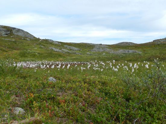 Die Sonne scheint immer noch. Also, Rucksack nochmal auf und los geht´s.,. Heute zum 2. Nationalpark Vadvetjäkka. Ein wilder Park ohne jegliche Wege oder Pfade. Eine Strasse führt da allerdings auch nicht hin. Um überhaupt erst an die Grenze zu kommen muss man eine Strecke von einfach 8 km zurücklegen. Na dann mal los... Nach guten 3 Stunden liegt der Park vor uns. Dichter Birkenwald, feuchte Moore, runde Felsen, Überbleibsel vom Gletscher - unberührte Natur und bestimmt jede Menge Tiere die wir aber mal wieder nicht zu Gesicht bekommen da wir wieder umkehren müssen. Dogo wartet, wir haben kein Zelt dabei und schlafen im Wald ohne Alles, nein Danke.. erstens ist der Proviant schon komplett vernichtet und zweitens ist von uns morgen sonst evtl nicht mehr so viel übrig. .. Wir machen uns auf den Rückweg, sehn unterwegs einige Lemminge tot und lebendig, naschen Moltebeeren und sichten wieder unendlich viele rießen Pilze und verfallen in den Blaubeerwahn.. Gigantische Felder dieser sauleckeren Beere liegt direkt vor unserer Nase,.. Wir schlagen zu und nehmen noch ein paar hundert mit für nen Obsalat oder Blaubeerpfannenkuchen... Vorsicht ist allerdings schon geboten bei der Beerengeschichte.. Fast identisch ist die Rauschbeere, die sich gerne einfach mal so zwischen die Blaubeere schmuggelt.. sterben tut man zwar nicht gleich dran, aber dafür ist einem am nächsten Tag kotzübel und der Kopf spielt Lieder wie nach nem ordentlichen Schoppen..Da wir aber unseren persönlichen Biologen Werner mit am Start haben können wir mittlerweile recht gut Blau von Rauschbeeren unterscheiden. Nach 5 Stunden marschieren, gefundenem Ziel, rauchenden Socken und mächtigem Kohlkampf wollen wir einfach nur noch die Füße hochlegen. Wo ist verdammt nochmal der Pizzaservice ???