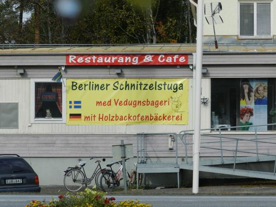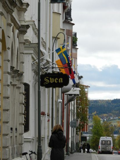 Wir fahren weiter bis nach Östersund. Das liegt geographisch ca in der Mitte Schwedens und ist die Hauptstadt des Speiselandes Schwedens. Auch Schweden hat sein Ungeheuer von Loch Ness. Nur das hier der See Storsjön heißt. Er ist der fünft größte im Land. Schon seit Jahrhunderten geistert das Ungeheuer durch die Köpfe von Bewohnern und Besuchern. Angeblich wollen 500 von ihnen die Erscheinung schon gesehen haben. Wir gehören nicht dazu, aber das berührt uns auch recht wenig. Wir haben es dafür mit anderen kleinen Ungeheuern zu tun. Östersund gleicht nämlich aus unserer Sicht eher einem versoffenen Studentenvolk.. Wir übernachten auf´m Parkplatz in Nähe Centrum und gehen seit Ewigkeiten mal wieder auf en Bier in die Stadt. Die wenigen Pubs hier in der Stadt sind fast alle im urgemütlichen irischen style und ab 22h werden die Ledersessel, Bänke, Stühle oder die Hocker von schwedischen Hintern besetzt. Ab hier dreht sich beim gemischten Publikum alles nur noch um Alc..jawoll. Nach 2 Kneipen und zig besoffenen Schweden später schleichen wir zurück zum Parkplatz.. Es ist bitterkalt und auf der Gasse gibt´s für alle unter 18 heut anscheinend was für ümme. Es wimmelt von volltrunkenen pupärtierenden Teenies. - Ja, wär hätts gedacht. Am Wochenende verwandeln sich die sonst eher introvertierten Schweden fast alle zu einer trinkfreudigen Gemeinschaft.
