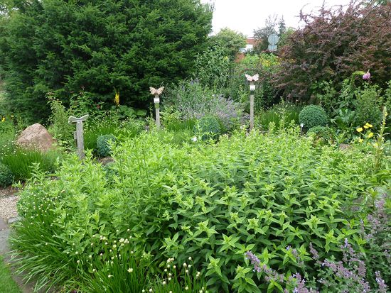 Es nieselt! Trotzdem fahren wir los zunächst zum Kreislehrgarten in Steinfurt . Mit Regenschirmen bewaffnet beginnen wir den Rundgang und sind beeindruckt und begeistert von der gesamten Anlage, die mehr als 30000 qm mißt. Ich muß eine ganze Reihe Notizen machen von neuen Kräutern!