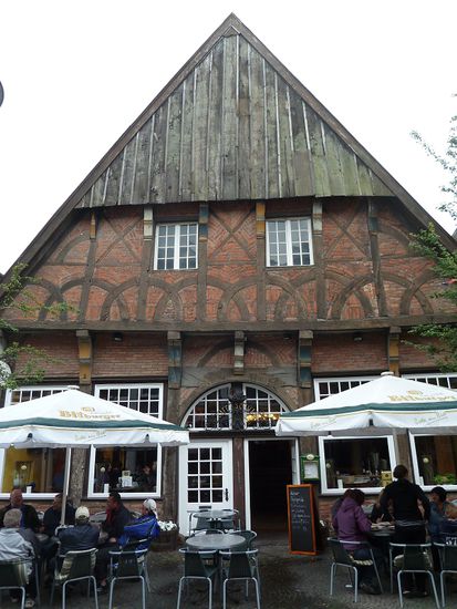 Das Haupthaus ist ebenfalls vollständig mit Wasser umgeben und lediglich über eine schmale Brücke vom vorgelagerten Wirtschaftshof erreichbar.