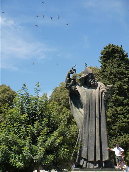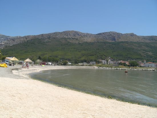 Heute wollen wir weiter. Aber erstmal belagere ich das Internet noch eine ganze Weile, denn Reisebericht schreiben und Fotos hochladen dauert halt seine Zeit. Außerdem sind die Jungs vom Platz hier einfach so nett und witzig und an einer Rezeption lernt man eh jeden kennen. Gegen Mittag ist es aber dann so weit. Unser Ziel heisst Split. Da wollen wir morgen hin, weshalb wir nun einen Platz in der Nähe brauchen. Den liefert uns dieses Mal wieder unser Boardatlas. Am späten Nachmittag kommen wir dort an und dürfen uns einen Platz aussuchen. Man sieht sofort, dass dieser Platz viel größer ist als alle anderen davor. Außerdem schön ordentlich eingeteil, sehr sauber und gut bewacht. Die meisten Plätze liegen unter Bäumen, wenn man möchte kann man sich aber auch in die pralle Sonne stellen. Es gibt zwei Kiesstrände und scheinbar ordentlich Animation. Also dieser Platz hier ist perfekt für Kinder. Nur sehr seicht reingehendes Wasser, Spielplätze, im Wasser aufgeblasene Inseln, .... . Auch Erwachsene die Aktion brauchen kommen hier völlig auf ihre Kosten. Es werden Ausflüge angeboten, man kommt schnell nach Split, es wird Volleyball, Aquajogging, Yoga,... angeboten.