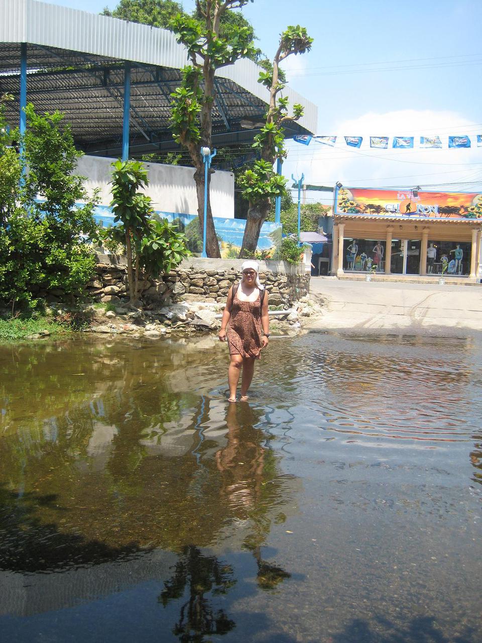 Am Nachmittag machen wir uns dann auf den Weg an die Playa Grande. Um dort hinzukommen, müssen wir durch einen Fluß waten ... Die Fußgängerbrücke steht zwar daneben, aber die ist kaputt. Somit laufen alle durch das Wasser ... aber das ist bei den Temperaturen ja recht erfrischend!