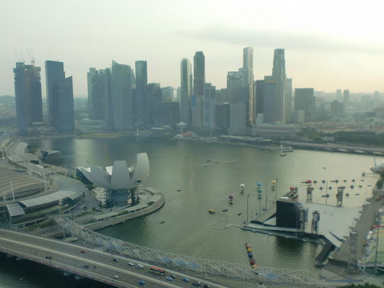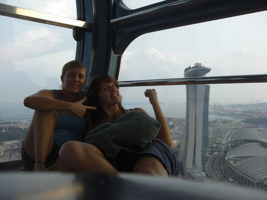 Am Mittwoch ging es dann los mit der Sightseeing Tour. Mit der MRT ins Centre zur City Hall und von dort sind wir zur nächsten Station des Hop-on Bus gelaufen. Mit diesem Bus kann man die Sehenswürdigkeiten von Singapur am besten entdecken. Das Ticket kostet 12 dollar und der Bus fährt die Stationen im 30 Minutentakt an. Also genau richtig um auszusteigen, besichtigen und wieder einsteigen. Erster Ausstiegspunkt war das Lao Pa Sat - ein sehr überfülltes Food Centre. Mussten natürlich etwas probieren, daher haben wir irgend ein Reisgericht mit Hühnchen bestellt, was sich dann als ultrascharf heraus stellte. Das sagte sogar Luisa und das will was heißen. Haben es dann trotzdem irgendwie runtergeschlungen auch wenn der Gaumen schon fast am verbrennen war..! Nächster Halt für uns war Clarke Quay; die Partymeile von Singapur. Dann ging es weiter zum Botanic Garden. Ein wunderschöner Park mit einem Orchideen Garten für den man allerdings Eintritt zahlen muss. (12 $) Aber das lohnt sich! Dann gings auf einen Besuch nach Little India und mit dem Bus wieder weiter zum Singapore Flyer. Das ist das größte Riesenrad der Welt und 165m hoch. Die Fahrt kostet 29,50 $ und geht ca. ne halbe Stunde. Und dabei hat man einen Wahnsinnsblick über die ganze Stadt - lohnt sich also auf jeden Fall. Wir machten die Fahrt ja nachmittags, aber bei Nacht wenn alles leuchtet ist es bestimmt noch schöner. Dann trafen wir uns mit Chris und sind zum one Raffles - das ist das höchste Gebäude von Singapur und ganz oben ist eine gemütliche Dachterrasse mit Bar - das 1 Altitude. Von dort hat man natürlich auch wieder einen mega Ausblick, der Eintritt kostet aber leider auch wieder und zwar 18 Dollar inklusive einem Getränk. Leider mussten wir nach glaube nicht mal einer viertel Stunde das Dach wieder verlassen da sich ein Gewitter ankündigte. Das war dann schon blöd, aber was will man machen.. Wir sind dann heim, haben uns schnell frisch gemacht und nachdem Chris uns erzählt hat, wo was so geht, sind wir ab auf die Piste! Und zwar in so eine Partyecke in der Nähe der City Hall. Haben uns an einem Club gemäß Chris Empfehlung angestellt bei dem man 20 Dollar zahlt und dann trinken kann so viel man will (Flatrate..=)) Ok nur bis halb zwölf aber reicht ja auch..! Sind da dann leider nicht reingekommen weil wir noch keine 23 sind!! Hallo? Was ist denn da los? Gut dann haben wir einen anderen Club gefunden, der hatte das gleiche Flatrateangebot. Dort spielte auch noch eine tolle Liveband - der Abend war also wieder gerettet! An sich wissen die Singapurianer wirklich wie man feiert! Alle sind total nett und versprühen eine richtig gute Laune die einfach nur ansteckt! Mit dem Taxi sind wir dann gegen Morgen und nach ein paar Drinks wieder heim. Die MRT fährt nämlich nur bis 23.30 Uhr.