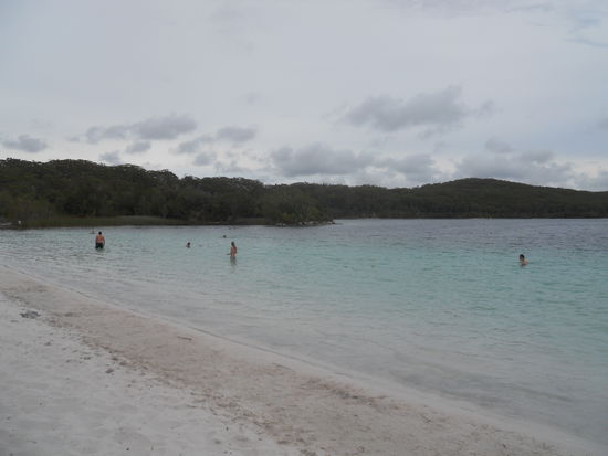 Lake McKenzie (in echt und bei gutem Wetter kommt der ganz anders rüber, der vordere Abschnitt ist komplett türkis!)